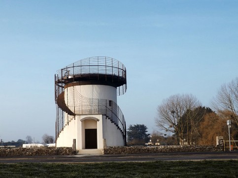 A l'image des mouvements de la mer et du vent je souhaitais rehausser la forme géométrique et désormais épurée du moulin par un garde corps en acier corten, le transformant ainsi en objet nouveau entre architecture et sculpture. En faisant écho aux mouvements de la mer et du vent, les deux éléments qui ont modelé le paysage de Saint Benoit des Ondes. Partant des fonctionnalités habituelles d'un garde corps, je voulais concevoir une sorte d'aura cinétique avec ces ondulations qui accompagnent l'ascension.