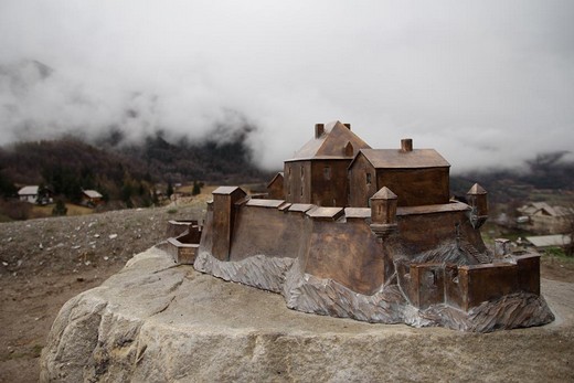 Quand j'ai visité le Fort Vauban de Saint-Vincent les Forts je n'arrivais pas à visualiser l'ensemble, je ne pouvais voir que des fragments de ruines éparpillées dans le paysage. C'est en survolant l'ensemble en deltaplane que l'idée m'est venue de disposer une maquette réalisée en bronze sur un gros rocher dans une certaine proximité. Dans cette proposition on peut passer d'une échelle à une autre, d'un point de vue historique à un autre.