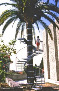 Pour moi cette pièce encore plus que d'autres est vraiment la réalisation dâ'un rêve, un rêve qui vient de l'enfance, parce que je suis originaire d'une région où il n'y pas de palmier. Et j'ai toujours révé de pouvoir grimper à cet arbre qui était tellement exotique pour moi, mais comme il n'y avait pas de branche, j'en étais frustré. Le fait d'enrouler un escalier hélicoédal autour de son tronc nous permet de monter dans l'arbre jusqu'à se retrouver sous ses palmes. Je propose un point de vue qui est celui du palmier, c'est une expérience particulière, et à la montée quand on se retrouve autour du tronc on a vraiment une autre perception.
